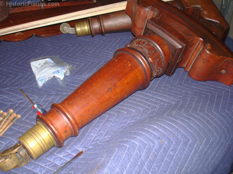 The unrestored legs with corroded brass casters