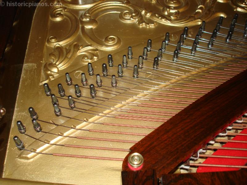 The tuning pins were antique, very short #2 pins from another early Chickering, reblued using a traditional steel bluing process