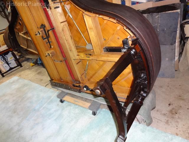 Attaching the finished legs to the unrestored piano