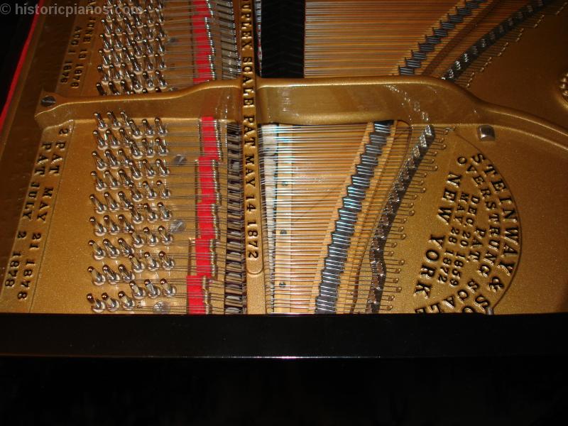 Detail of treble restringing, with new pins and polished duplex bridges