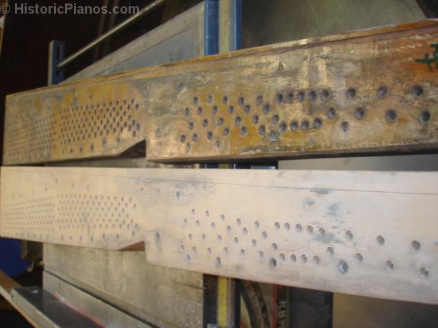 Old pinblock, top, with newly fitted one, lower, before installation in case